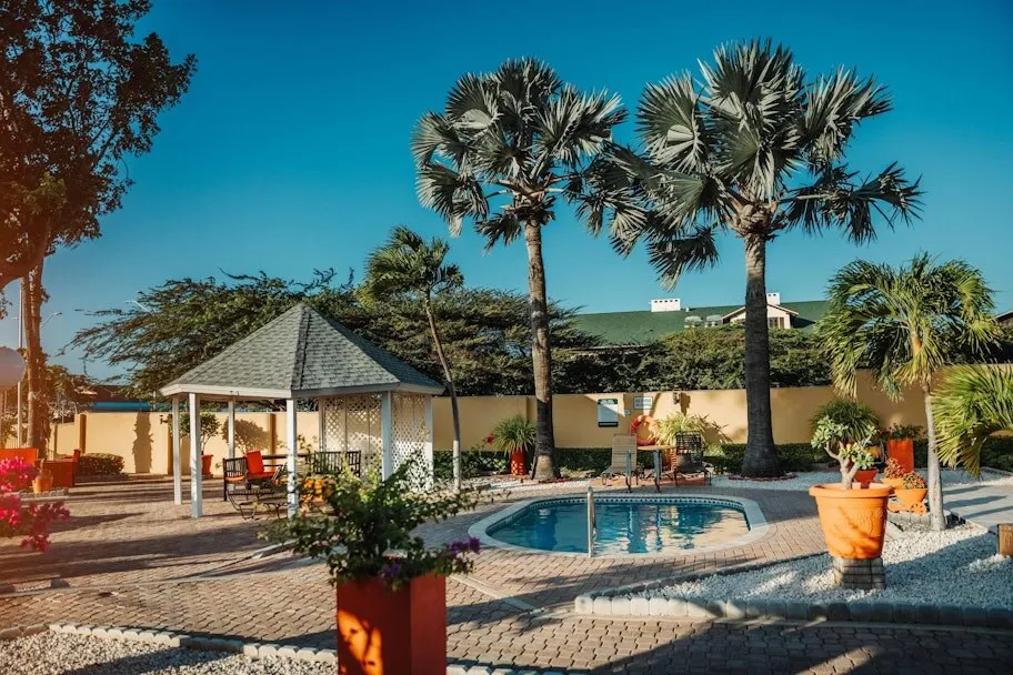 kleinschalig waardoor je snel contact met andere gasten. personeel is behulpzaam en vriendelijk kamers zijn eenvoudig en aan de kleine kant ontbijt is elke dag hetzelfde dat wordt geserveerd ,er is geen lopend buffet. ligging is perfect en is een prima uitvalsbasis naar Oranjestad en Palm Beach. prima met de bus te reizen. ligbedden zijn gratis (parasol niet)