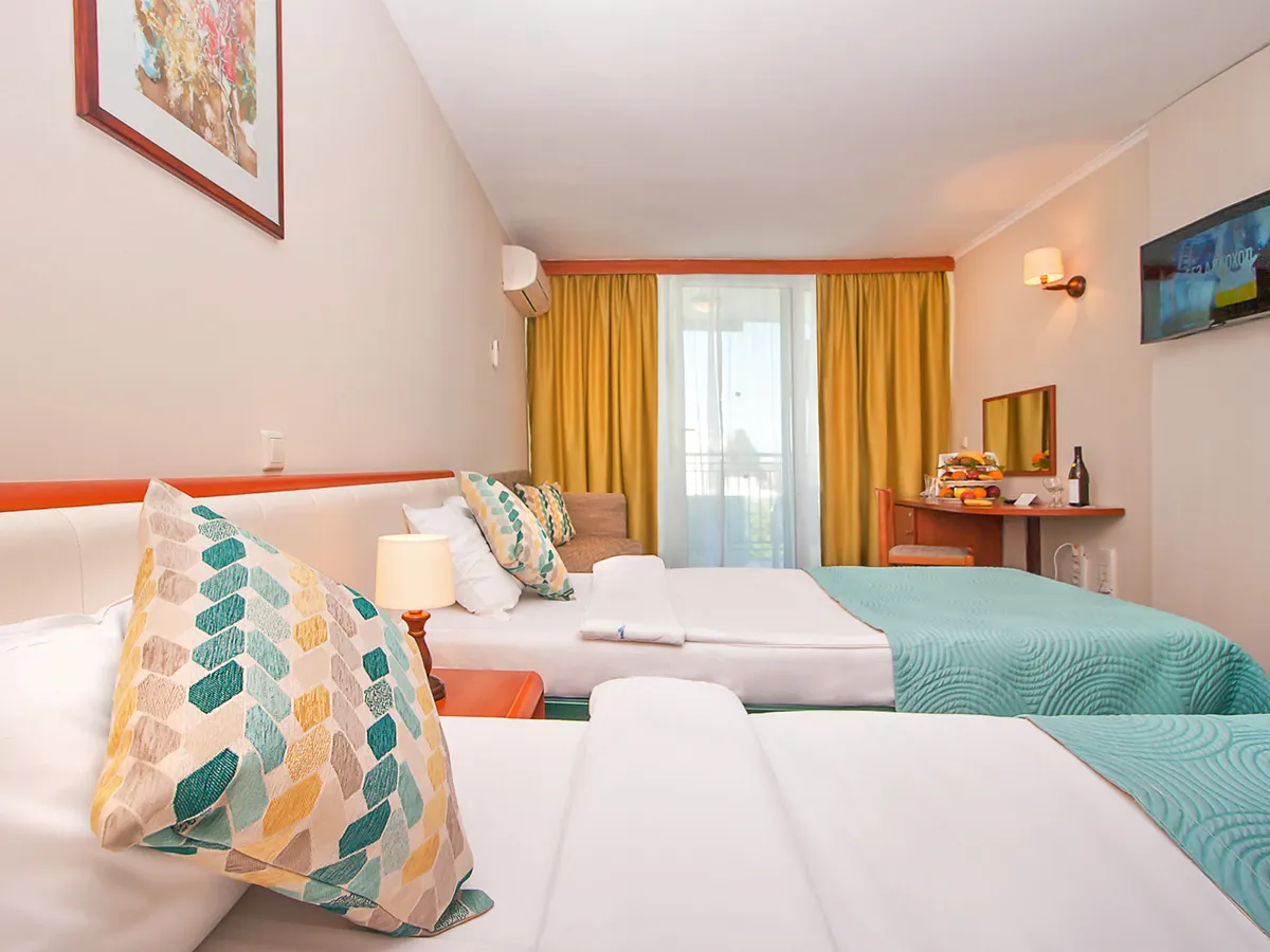 We hebben een hele fijne vakantie gehad. Ondanks dat er weinig variatie in het eten zat was het wel erg lekker en smaakte alles wel goed. Iedere dag worden de kamer schoongemaakt.let op handdoeken op de slaapkamer mogen niet naar het zwembad maar voor €2,50,- per handdoek kan je een handdoek lenen voor je gehele verblijf dus per see een eigen handdoek meenemen is niet noodzakelijk. Winkels en restaurant voor de deur. Wij gaan zeker nog eens terug naar Bulgarije.