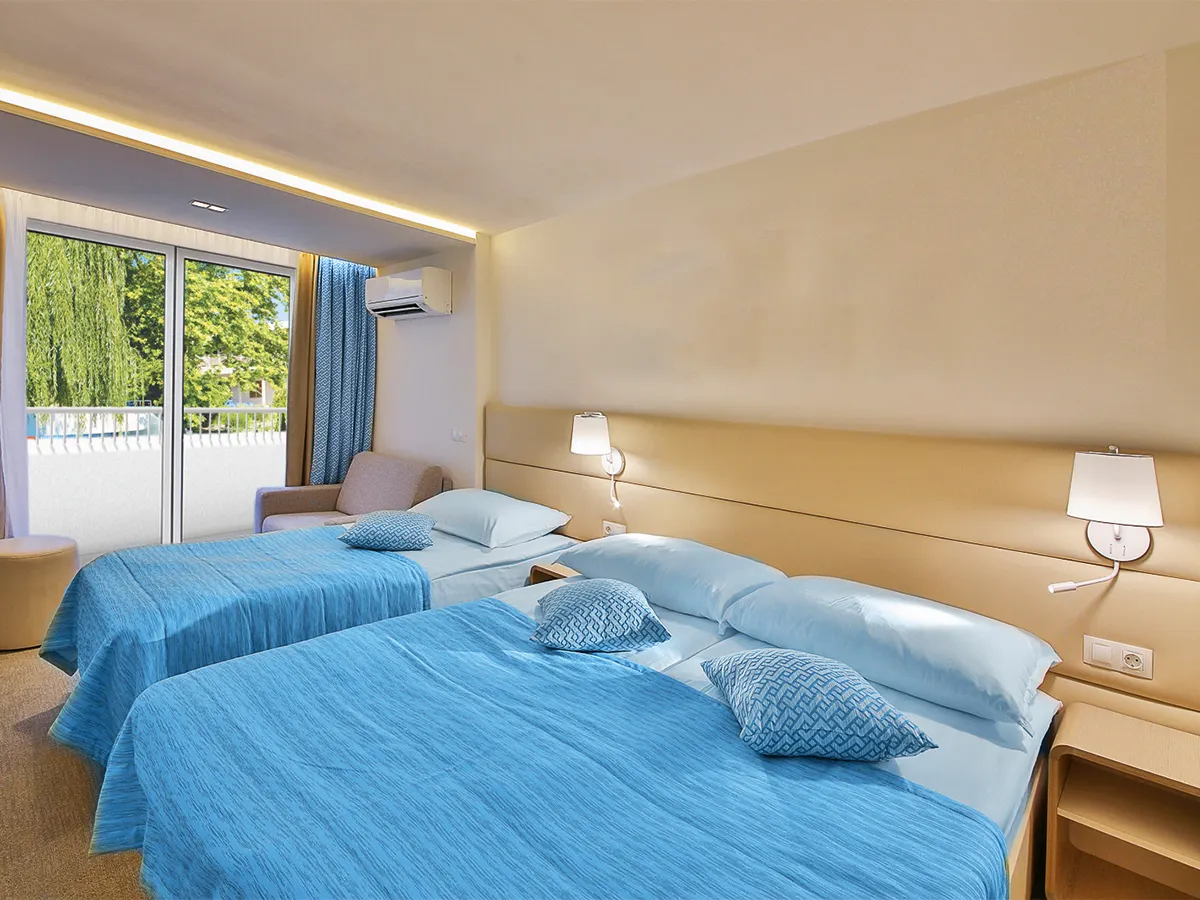 - Tweepersoonskamer (DZ, ca. 21 m².), airconditioning, minibar (tegen betaling), koffie-/theezetapparaat, telefoon, tv, WiFi. Douche, toilet, haardroger. Balkon met zeezicht/zeezijde. Max. 3V+1K, naar keuze te boeken met stapelbed (DZ4). Max. 2V+2K<br>Familiekamer (FZ, ca. 42 m²), 2 DZ met verbindingsdeur, airconditioning, minibar (tegen betaling), koffie-/theezetapparaat, telefoon, tv, WiFi. Douche, toilet, haardroger. Balkon met zeezicht/zeezijde. Max. 4V+2K