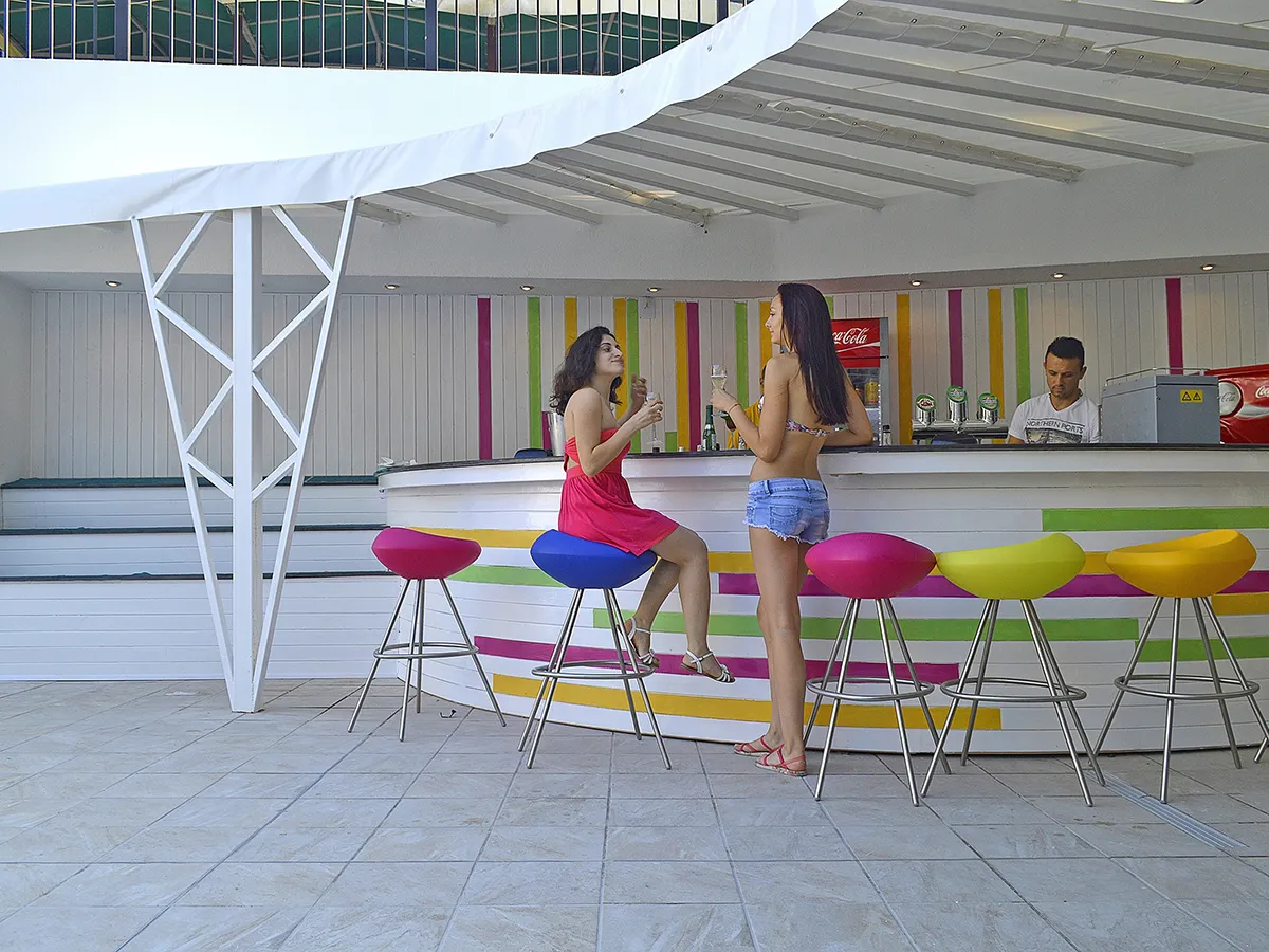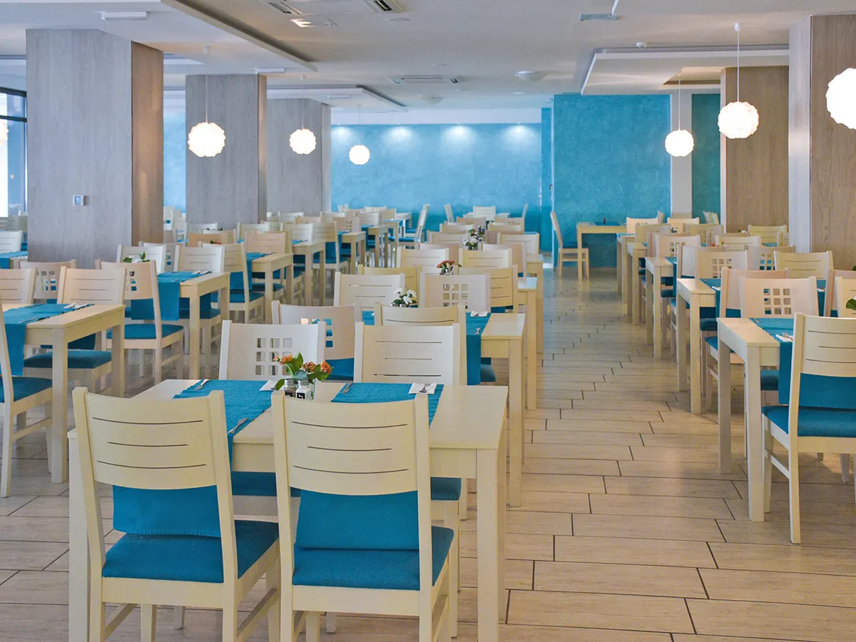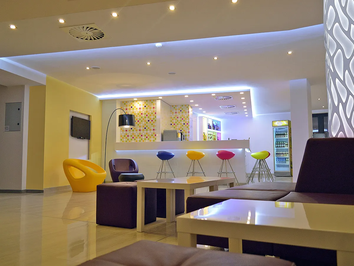 - Modern hotel met zwembad, kinderbad, zonneterras, ligbedden en parasols., badhanddoeken (tegen borg), poolbar. Ontvangsthal met receptie, WiFi, zithoek, lobbybar, buffetrestaurant. 4 sterren, 200 kamers, 5 verdiepingen, liften.