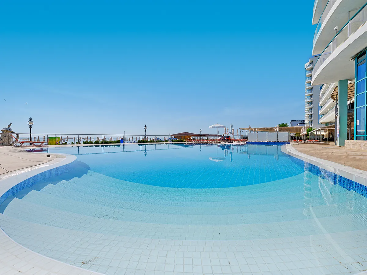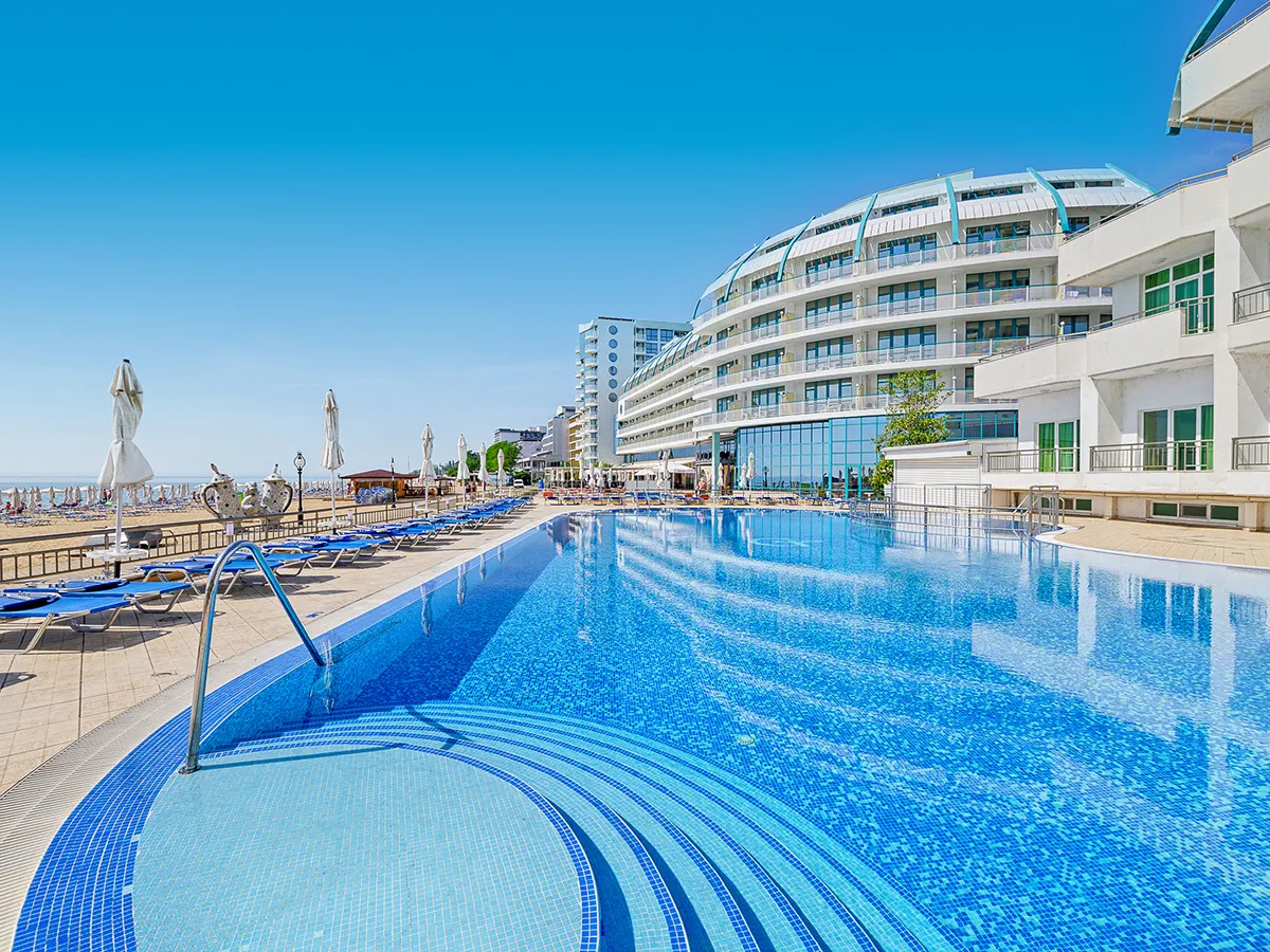 - Modern hotel met 4 gebouwen, zwembad, zonneterras, 2 ligbedden en 1 parasol per kamer aan het zwembad of strand (op basis van beschikbaarheid, badhanddoeken tegen borg). Zwembad- en strandbar, hotellobby/receptie, WiFi in de openbare ruimte, lobbybar, buffetrestaurants en à-la-carte-restaurant. 4 sterren, 355 kamers, 6-11 verdiepingen, 6 liften.