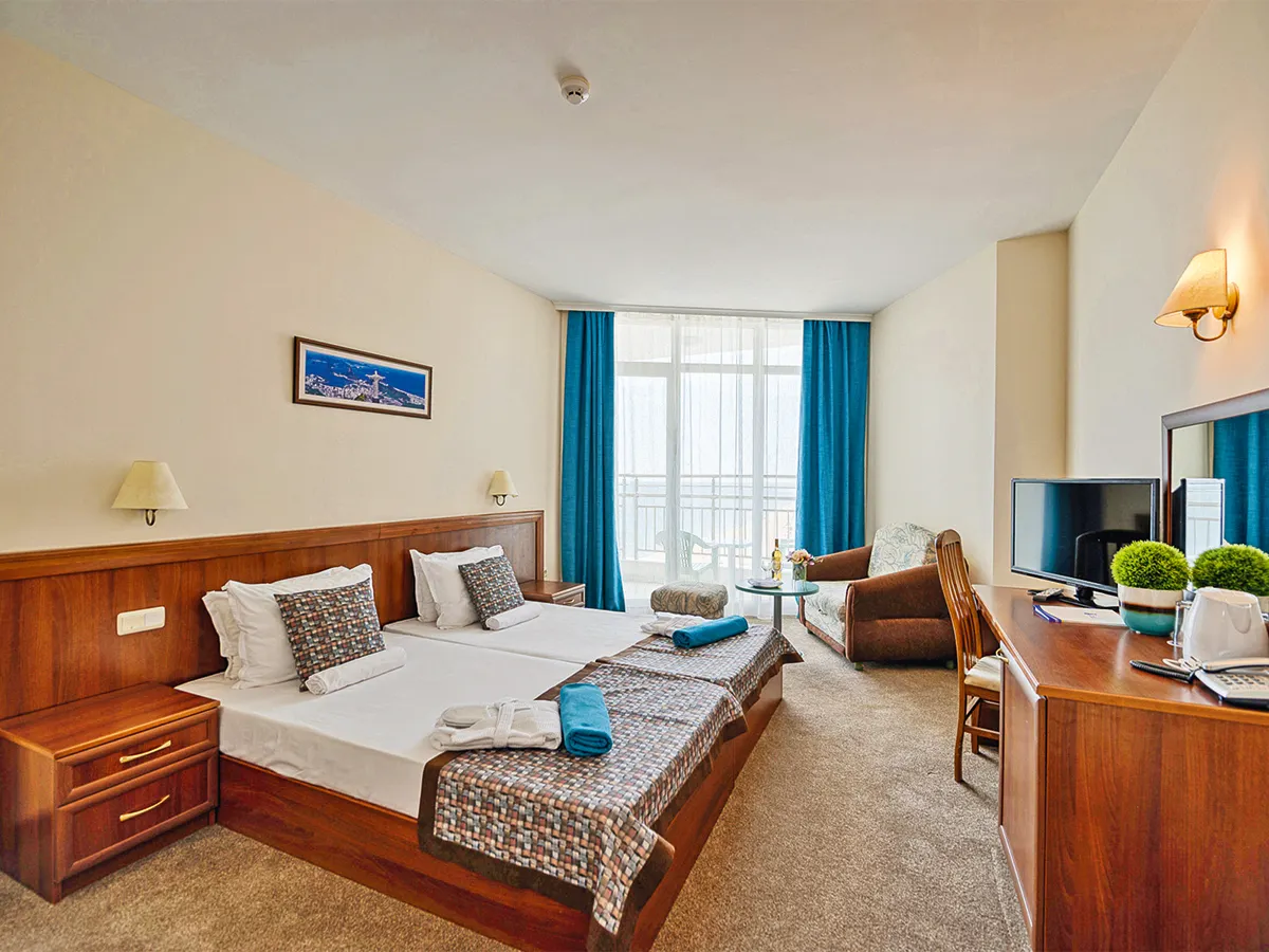 - Tweepersoonskamer (DZ, ca. 23 m²), airconditioning, telefoon, tv, WiFi. Douche, toilet, haardroger, balkon. Max. 2V+1K, ook voor alleengebruik te boeken (EZ)<br>Tweepersoonskamer (DZM, DZD, ca. 23 m²), aircon., telefoon, tv, WiFi. Douche, toilet, haardroger, balkon met zijdel. zeezicht. Max. 3V, te boeken voor alleengebruik (EZM)<br>Familiekamer (FZ, ca. 29 m²), airconditioning, telefoon, tv, WiFi. Douche, toilet, haardroger. Balkon, zijdelings zeezicht. Max. 2V+2K appartement (APB, ca. 40 m²), ap. woon-/slaapruimte, airconditioning, telefoon, tv, WiFi. Balkon met zijkant of direct zeezicht. <br>Studio (STA, ca. 40 m²), airconditioning, telefoon, tv, WiFi.
