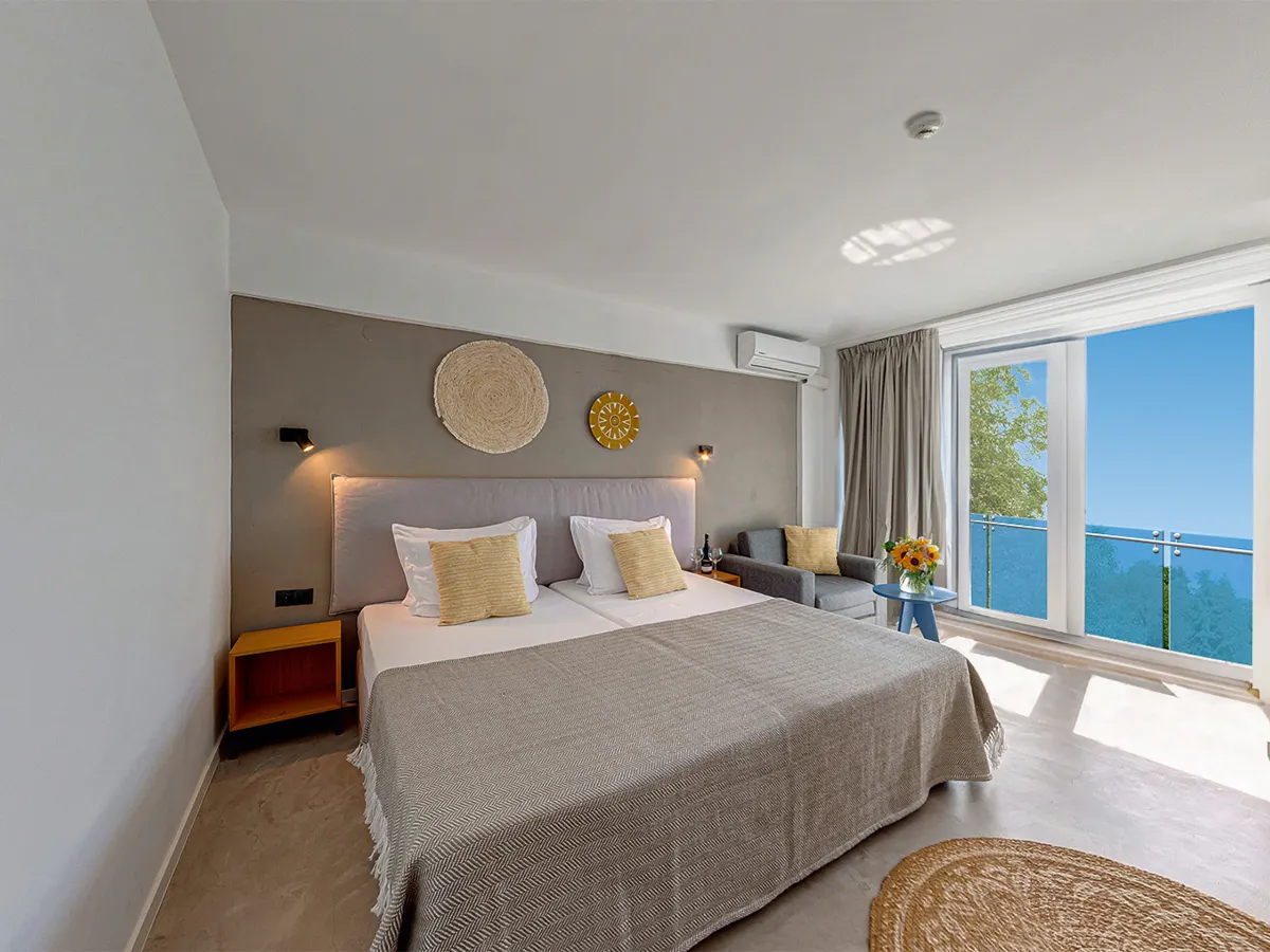 - Tweepersoonskamer (DZ, ca. 18 m²), airconditioning, minibar, tv, WiFi, telefoon. Bad/douche, toilet, haardroger. Balkon met tuinzicht. Max. 3V<br>Eenpersoonskamer (EZ, ca. 16 m²), airconditioning, minibar, tv, WiFi, telefoon. Bad/douche, toilet, haardroger. Balkon met tuinzicht<br>Deluxe-kamer (DZD, ca. 30 m²), op de 7e verdieping, airconditioning, minibar, tv, WiFi, telefoon. Bad/douche, toilet, haardroger. Balkon met zeezicht. Max. 3V/2V+2K<br>Familiekamer (FZ, ca. 20 m²), airconditioning, minibar, tv, WiFi, telefoon. Bad/douche, toilet, haardroger. Balkon met uitzicht op de tuin. Max. 3V+1K<br>Appartement (APB, ca. 36 m²), ap. slaapkamer, airconditioning, minibar, telefoon, tv, WiFi, bad/douche, toilet, haardroger. Balkon met tuinzicht. Max. 4V+1K