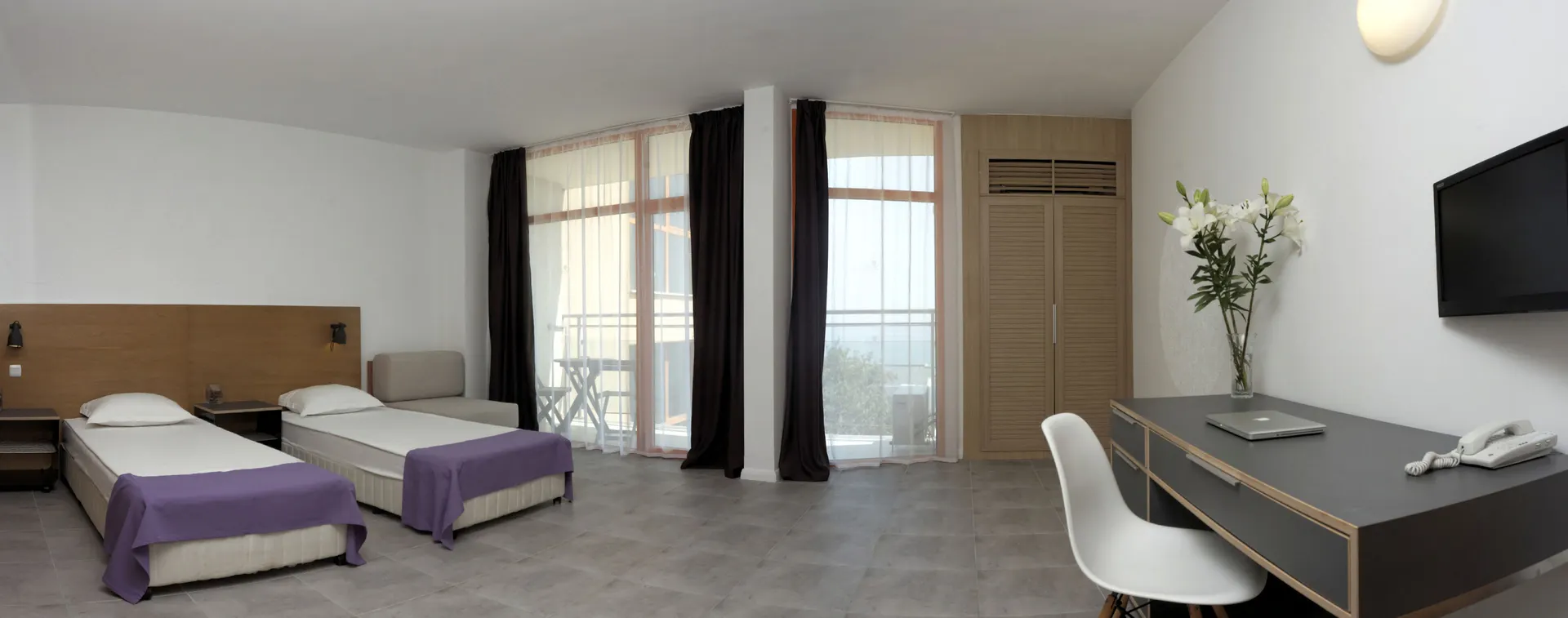 In de kamers zijn airconditioning en een centraal regelbare verwarming voorhanden. De gasten kunnen vanaf het balkon of het terras van het uitzicht op zee genieten. De kamers beschikken over een queensize bed en een slaapbank. Er zijn aparte slaapkamers aanwezig. Ook babybedjes en extra bedden kunnen worden klaargezet. Bovendien zijn een kluis en een minibar beschikbaar. Faciliteiten als een koelkast, een mini-koelkast en een thee-/koffiezetapparaat veraangenamen het verblijf. Voor vakantiecomfort zorgen een telefoon, een televisie en Wi-Fi (kosteloos). De badkamers zijn uitgerust met een douche, een bad en een bubbelbad. Verder is een föhn voorhanden. Het hotel beschikt over gezinskamers en niet-rokerskamers.
