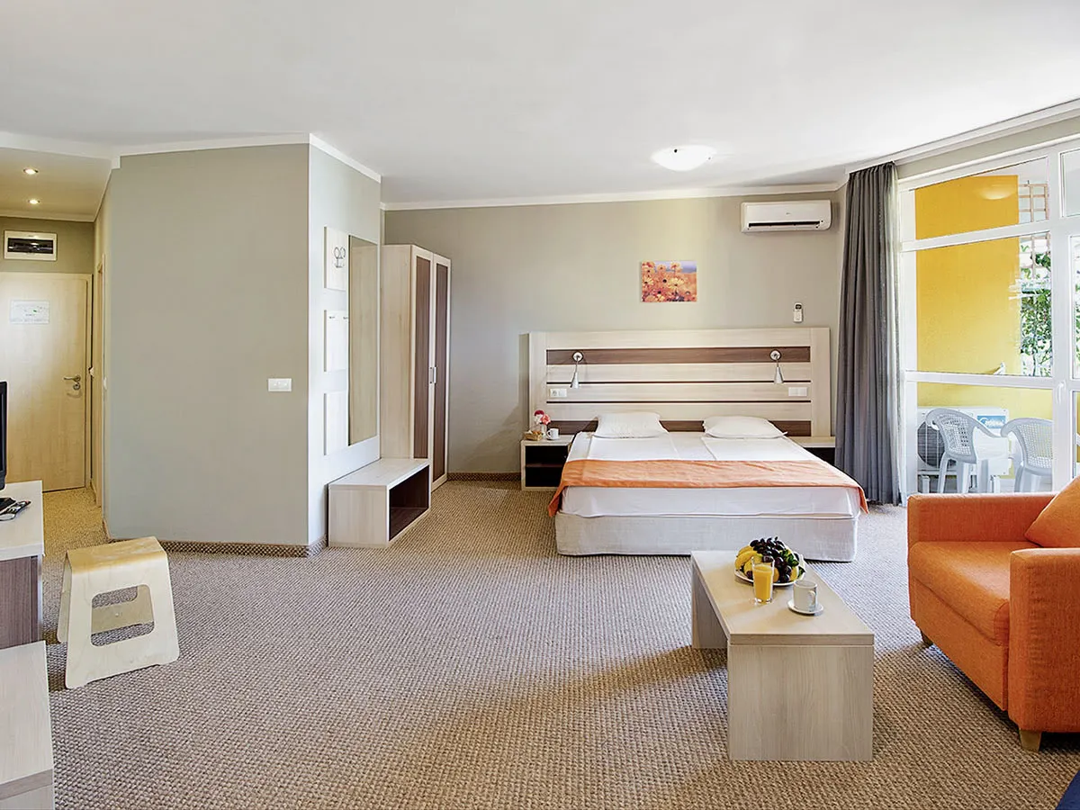 - Goed aangelegde tuin met zwembad, zonneterrassen, ligbedden, parasols, kussens bij het zwembad (op basis van beschikbaarheid). Poolbar, gedeeltelijk overdekt terras, strandbar (tegen betaling). Ontvangsthal, receptie, lobbybar, WiFi, buffetrestaurant, terras. Landscat.: 4 sterren, 81 kamers.