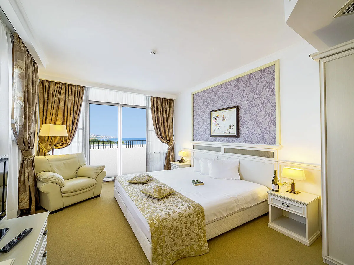 - Halfpension: Ontbijtbuffet, 's avonds koud/warm buffet<br>Naar keuze diner in het themarestaurant (Bulgaarse keuken; reservering verplicht)