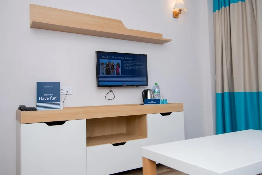honden niet toegestaan, de fitness is toegankelijk vanaf 14 jaar, de badmeesters en -juffen van het aquapark krijgen 's middags ook trek en dus sluit het aquapark tijdens lunchtijd, tijdens het diner geldt een dresscode; een nette korte broek voor mannen is toegestaan, zwemkleding en slippers zijn niet toegestaan, het hotel ligt op een heuvel, daardoor is het minder geschikt voor mensen die slecht ter been zijn, Thea's coffee bar is geen onderdeel van het All Inclusive aanbod, de shuttlebus rijdt 1 keer per uur en tot 17:30 uur, Het is onbekend of deze reis/accommodatie in het algemeen geschikt is voor personen met beperkte mobiliteit. Of deze reis/accommodatie voldoet aan jouw specifieke behoeften, hangt af van je persoonlijke situatie. Neem hiervoor contact met ons op, zodat wij kunnen nagaan in hoeverre deze reis/accommodatie voldoet aan jouw behoeften.