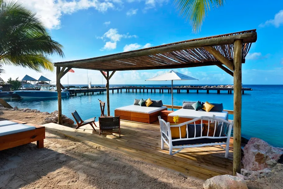 de zwembaden bevatten zeewater, wanneer je ontbijt hebt bijgeboekt, dan ontbijt je tussen 07.00 en 10.30 uur bij Cabana Beach (à la carte). In het weekend is er live muziek bij Mood Beach, de exotische locatie van Cabana Beach leent zich perfect voor live entertainment. Op woensdagavond kun je na het gebruikelijke happy hour genieten van een DJ en live band-optreden. Op woensdag zijn er feesten bij Cabana Beach en op zondagavond bij Wet & Wild. Ook is er vrijdag live entertainment bij Mood Beach tijdens diner. Op overige avonden hangt er rondom het hotel een levendige sfeer, die vaak gepaard gaat met muziek. Het kan voorkomen dat deze muziek ook in het hotel hoorbaar is, Cabana Beach beschikt op het strand over een VIP-gedeelte. Hier mag je tegen betaling gebruik van maken, voor de Tropical Superior kamer geldt: dagelijks een luxe loungebed bij Cabana Beach (gereserveerd tot 11:00 uur, daarna o.b.v. beschikbaarheid) •voor boekingen vanaf 1 november 2025 en bij een verblijf van minimaal 7 nachten: 1 strandtas per kamer, gevulde minibar op de dag van aankomst (2x water, 2x soda en 2x bier) en een welkomst cocktail voucher, voor de Beachfront Suite en de Seaview Suite geldt: voor boekingen t/m 31 oktober 2025: dagelijks een gegarandeerd luxe loungebed in het VIP gedeelte van Cabana Beach (op naam gereserveerd en de gehele dag beschikbaar) •voor boekingen vanaf 1 november 2025: dagelijks een luxe loungebed bij het deluxe gedeelte van Cabana Beach (gereserveerd tot 11:00 uur, daarna o.b.v. beschikbaarheid), 1 strandtas per kamer, een gevulde minibar op de dag van aankomst (2x water, 2x soda en 2x bier) en bij een verblijf van minimaal 7 nachten ook nog een welkomst cocktail voucher, je kunt gratis gebruik maken van de fitnessruimte bij BlueMaxx Health Club op ca. 5 minuten lopen van het hotel, sommige kamers liggen op de eerste verdieping en zijn te bereiken via een trap. Houd hier rekening mee als je slecht ter been bent, The Kontiki Curacao Beach Resort vraagt bij het inchecken een borg van USD 100 of EUR 100, het is niet mogelijk om contant te betalen bij Cabana Beach, Mood Beach en Wet & Wild