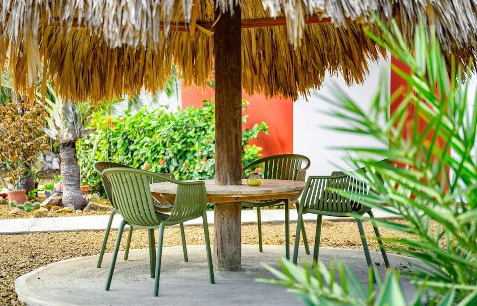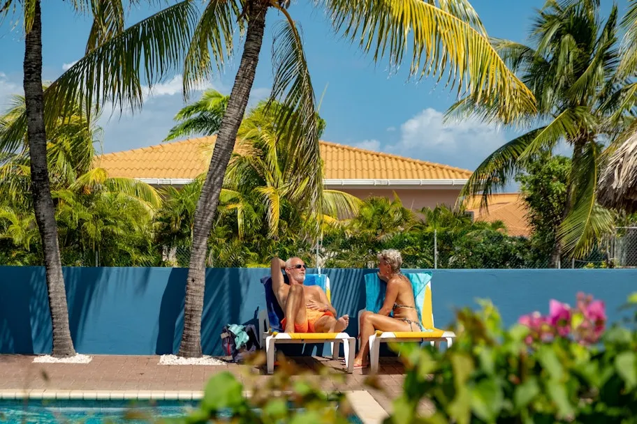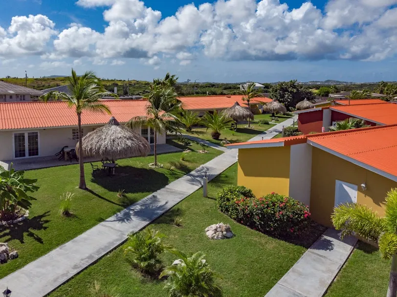 Op dit knusse resort is het fijn zitten op het terras voor je bungalow. De weelderige tuin is een genot voor het oog. Grote palmen, roze bloemen en cactussen. Voor tips loop je naar Janine en André die je alles vertellen over het eiland. Niet alleen waar je boodschappen kunt halen, maar ook waar de mooie stranden zijn. Of maak gewoon een gezellig praatje. Om de hoek zit Sint Joris Baai. Een prachtig stuk natuur en een rijk broedgebied.