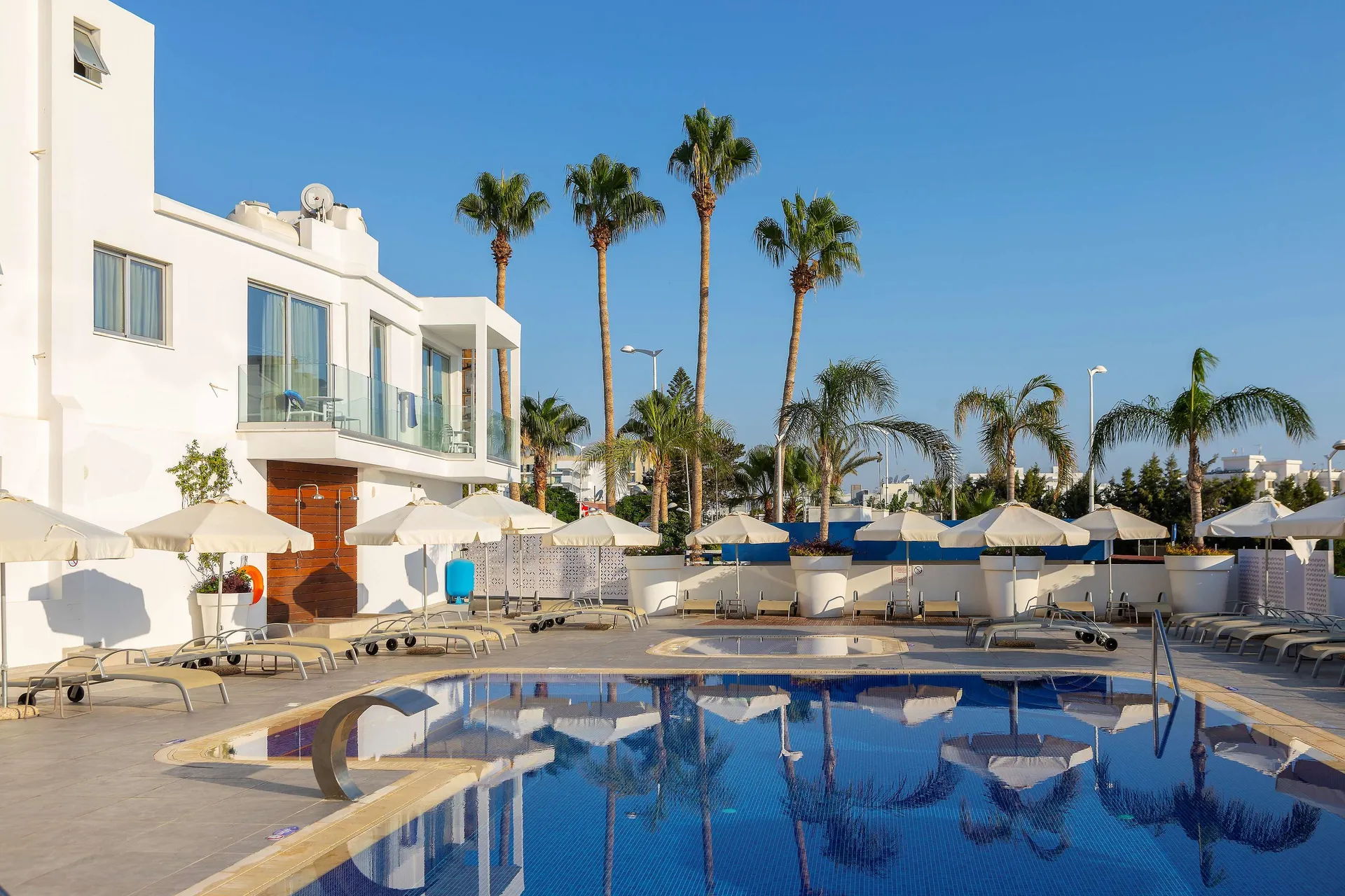Dit strandhotel verwelkomt de gasten in Protaras en biedt in het bijzonder voor volwassenen die in de vakantie onder elkaar willen zijn alle voorwaarden voor een aangenaam verblijf.