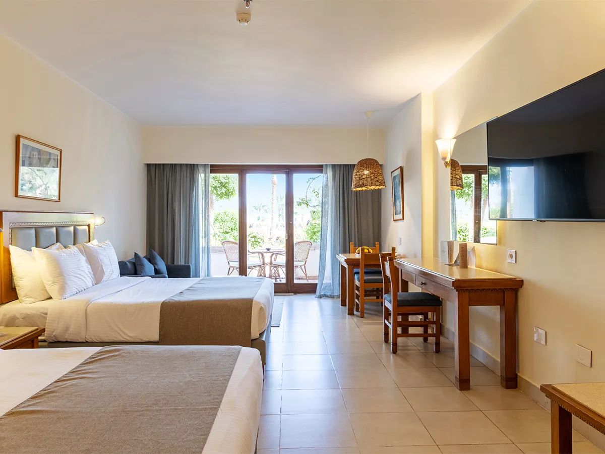 - Superior-kamer (DSP, ca. 38 m²), airconditioning, minibar, tv, telefoon, kluis. Douche, toilet, haardroger. Balkon/terras. Max. 3V, te boeken voor alleengebruik (ESP)<br>Familiekamer (FZ, ca. 44 m²), 2 kingsize bedden, slaapbank, airconditioning, minibar, tv, telefoon, kluis. Douche, toilet, haardroger. Balkon/terras met tuinzicht, naar keuze deluxe-familiekamer (FZD, ca. 45 m²), zwembad- en zijdel. zeezicht. Max. 3V+1K