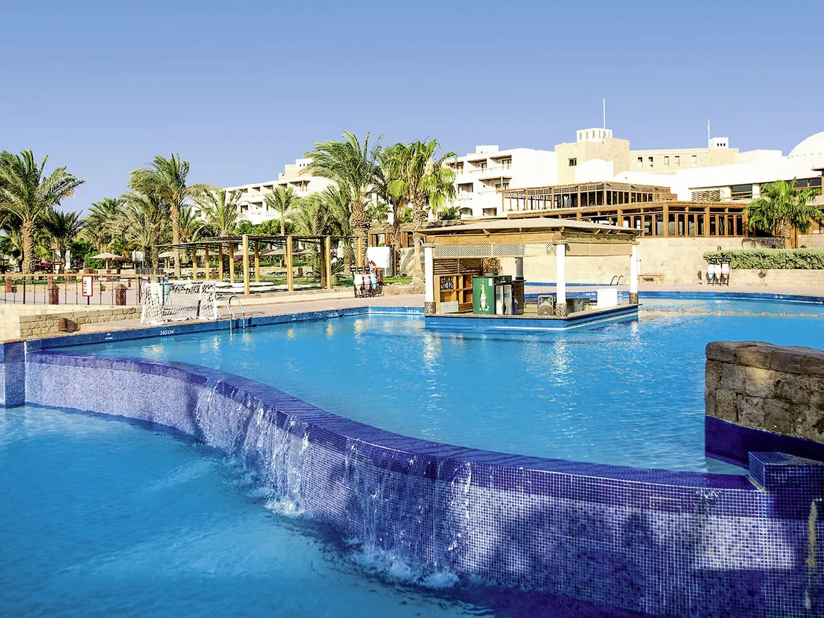 - Bekend vakantieoord met uitgestrekte, exotische tuinen, door bruggen verbonden zwembad, zonneterrassen, ligbedden, parasols, badhanddoeken, swim-up bar, strandbar. Hotellobby, receptie, lobbybar, WiFi in de lobby, 2 restaurants, 2 à-la-carte-restaurants (tegen betaling), bars, minimarkt, souvenirwinkel, kapper. Landcategorie: 4 sterren, 329 wooneenheden, 4 verdiepingen.