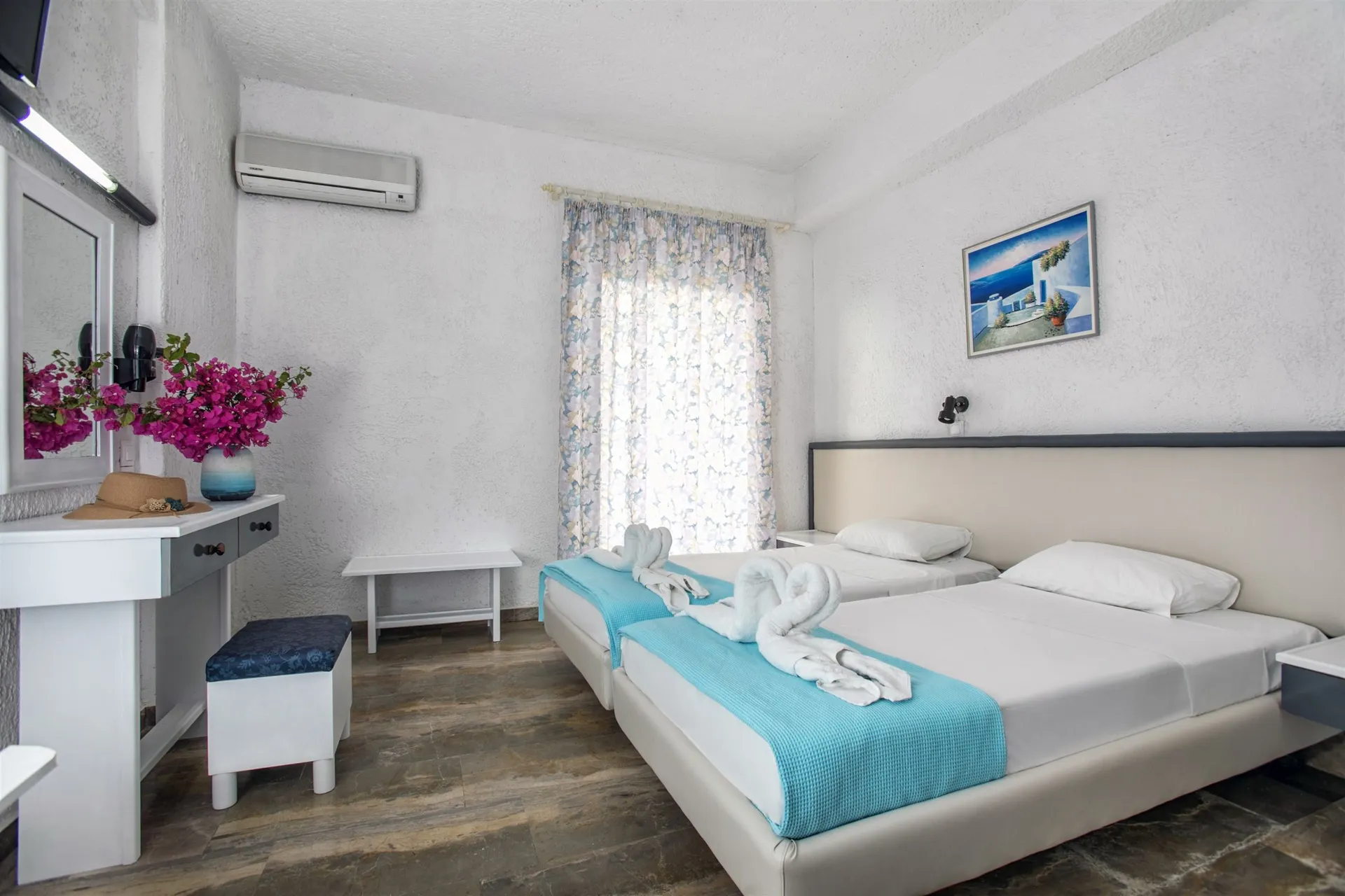 Airconditioning en een verwarming zorgen voor een prettig luchtklimaat in de kamers. De gasten kunnen vanaf het balkon of het terras van het uitzicht op de bergen genieten. De kamers beschikken over een tweepersoonsbed. Voor de jongste gasten staan kinderbedjes klaar. Bovendien zijn een kluis en een minibar beschikbaar. Ook een koelkast behoort tot de standaardvoorzieningen. Voor vakantiecomfort zorgen een telefoon, een televisie, een radio en Wi-Fi (kosteloos). In de badkamer, uitgerust met een douche en een bad, vinden de gasten een föhn. Het hotel beschikt over gezinskamers en niet-rokerskamers.