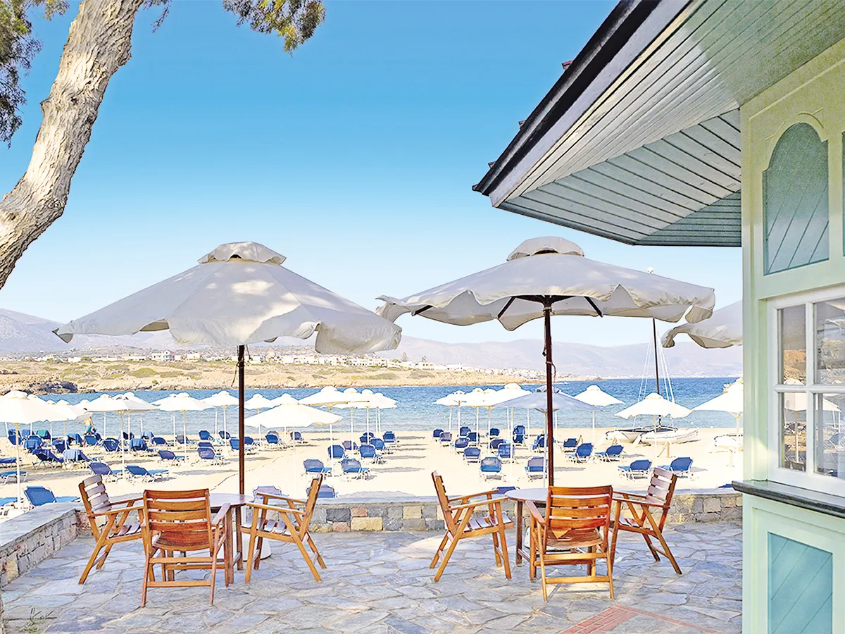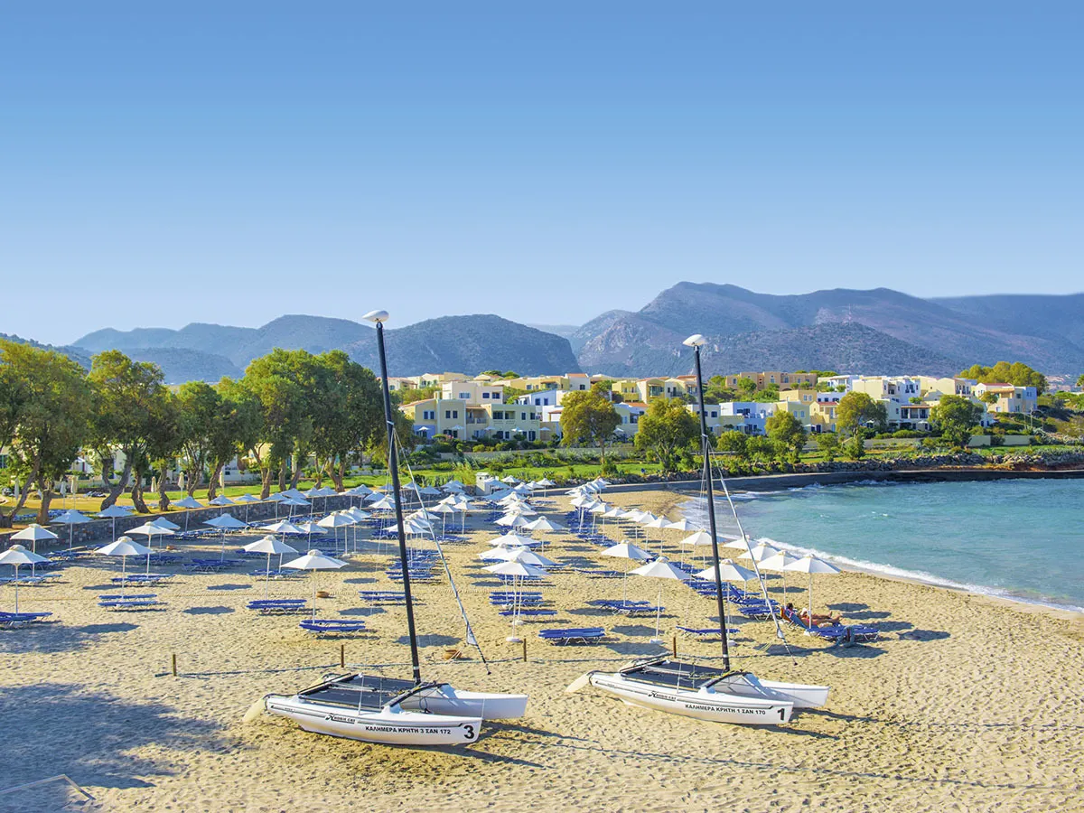 - Stijlvol resort, bestaande uit een hoofdgebouw en 3 Kretenzische stijl bungalowdorpen met een prachtige tuin direct aan het strand. In het buitengedeelte, 2 zwembaden met zonneterrassen en 2 kinderbaden. Ligbedden, parasols en badhanddoeken bij het zwembad en op het strand, strandbar, à la carte restaurant, dorpsplein met bar, shops. In het hoofdgebouw ontvangsthal, lobby met zithoeken, WiFi in het gehele hotel, hoofdrestaurant, bar, binnenzwembad, natuurstenen grot.