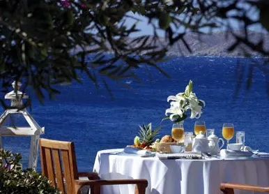 Dit luxueuze resort ligt bij het strand van Agios Ioannis, slechts ca. 4 km verwijderd van het centrum van Mykonos, Chora. Door zijn unieke ligging biedt het hotel verbazingwekkend fraai uitzicht over de Egeïsche Zee en het eiland Delos, en vormt zo en ideale omgeving om te ontspannen. Het hotel is ca. 5 km van de dichtstbijzijnde luchthaven en haven.