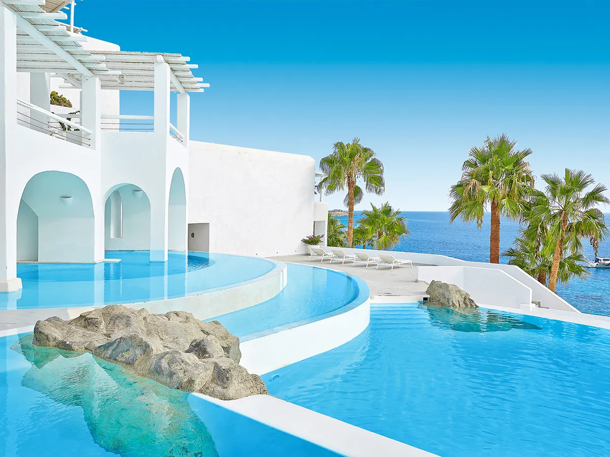 Elegant resort met infinitypool, ligbedden en parasols bij zwembad en strand, handdoeken, poolbar, beach club, beach service. Receptie, wifi, 2 bars, 2 restaurants. Landscat.: 5 sterren, 103 kamers.