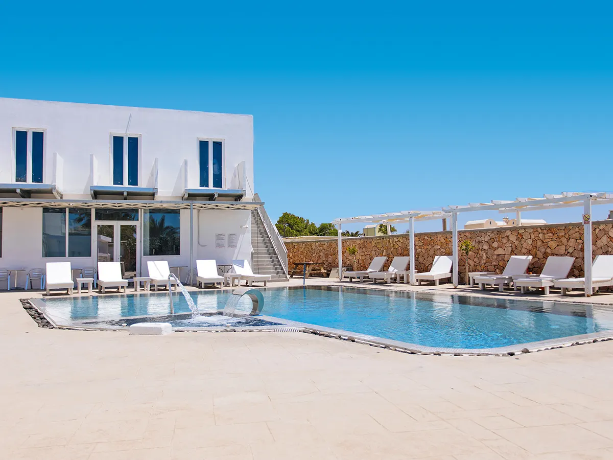 Smaakvol ingericht hotel in Cycladische stijl. Complex met zwembad, jacuzzi en zonneterras. Hotellobby, receptie (specifieke tijden bezet) en zithoeken. Wifi en badhanddoeken inclusief. Landcategorie: 4 sterren, 32 wooneenheden op 2 verdiepingen.