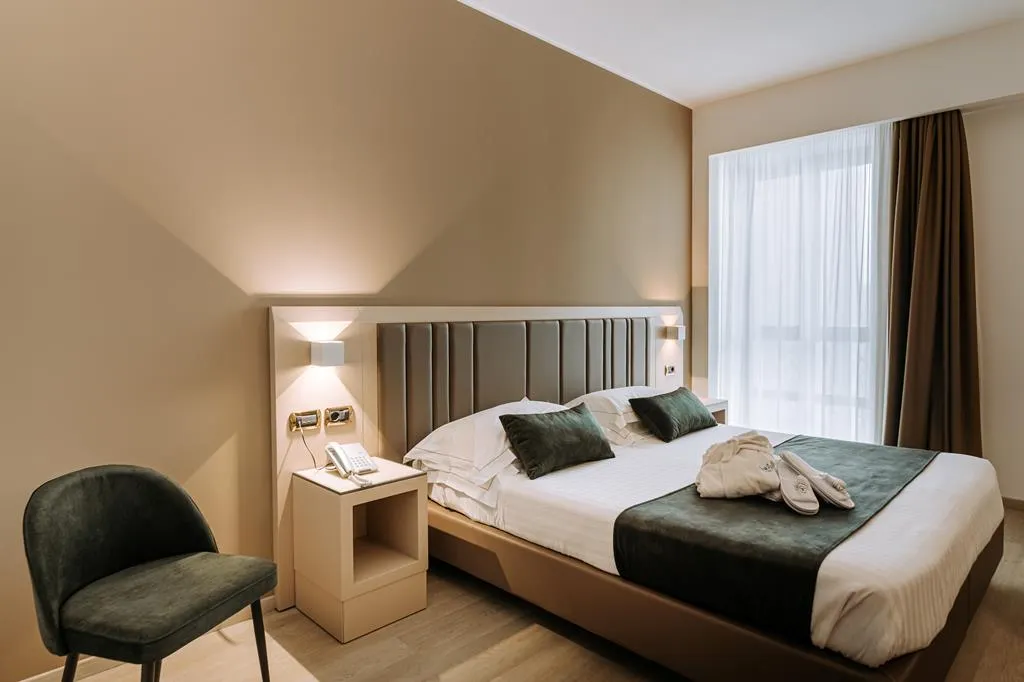 Rustig gelegen, achteraf gelegen. Het is noodzakelijk om een auto te hebben, niets op loopafstand. Wandelen in de omgeving is geen aanrader ivm ontbreken van voetgangers pad. Hotel is groot, vrij sfeerloos. De ruimte rondom het hotel is mooi maar wordt niet benut, alleen voor huwelijksfeesten e.d. avondeten redelijk, je krijgt €8 korting als je in het hotel verblijft maat je betaalt €5 per stoel extra servicekosten (hoorden wij van andere gasten). Prijs van drank en lunch is bovengemiddeld. Vriendelijk personeel, doet haar best. Wel raar om te merken dat bij thuiskomst een ober van boven de 35 jr onze dochter van 23 jr wil gaan volgen op instagram. Ongepast en onprofessioneel vinden wij. Ontbij was onder de maat, maar toen de Italianen vakantie werd het aanbod uitgebreid met o.a. vers fruit. In de minibar zitten 4 kleine flesjes water, die bij uitchecken in rekening worden gebracht. Ook betaal je voor de handdoeken voor het zewembad. Wel iedere dag schone handdoeken op de kamer. Kortom prima hotel voor een paar dagen, wij zaten er 10 dagen, we hebben veel gezien van de omgeving, maar iedere avond met de auto weg moeten om wat vertier te krijgen vinden wij een groot nadeel. Ik zou daarom dit hotel niet meer boeken.