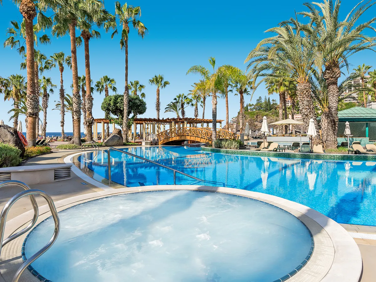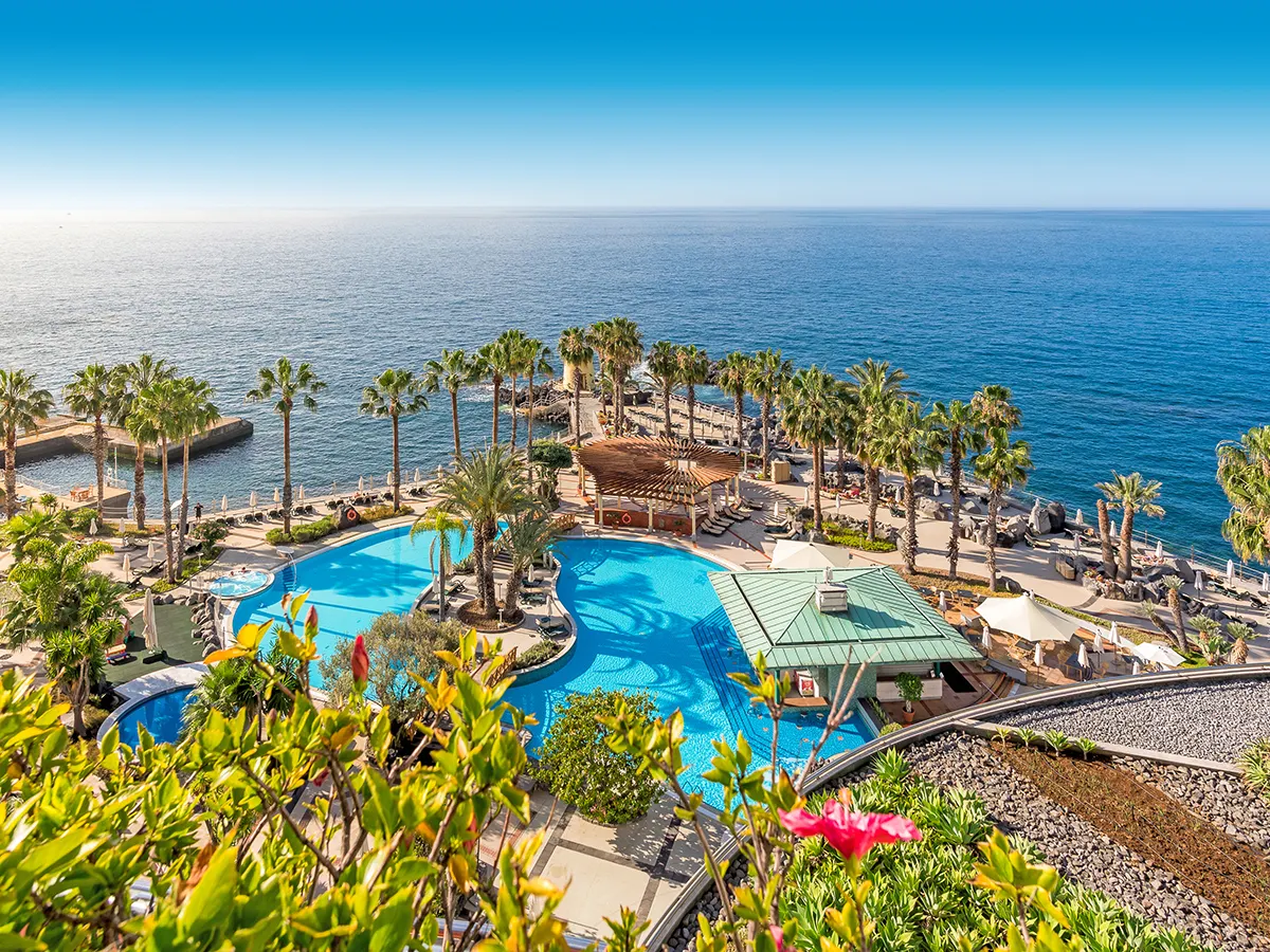 Architectonisch aantrekkelijk vormgegeven hotel van de Savoy Signature-groep. Ontspan bij het zwembad met een adembenemend uitzicht op de baai van Funchal.