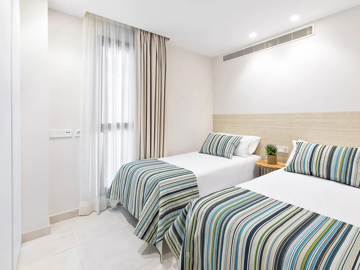 - Appartement (APB, ca. 70 m²), exclusief uitgerust, aircon., woonkamer, ap. slaapkamer, tv, WiFi, keuken, kluis. Douche/toilet, haardroger. Balkon. Max. 2V, te boeken voor alleengebruik (APE)<br>Appartement (APC, ca. 90 m²), exclusief uitgerust, aircon., woonkamer, 2 ap. slaapkamers, tv, WiFi, keuken, kluis. Douche/toilet, haardroger. Balkon. Max. 4V