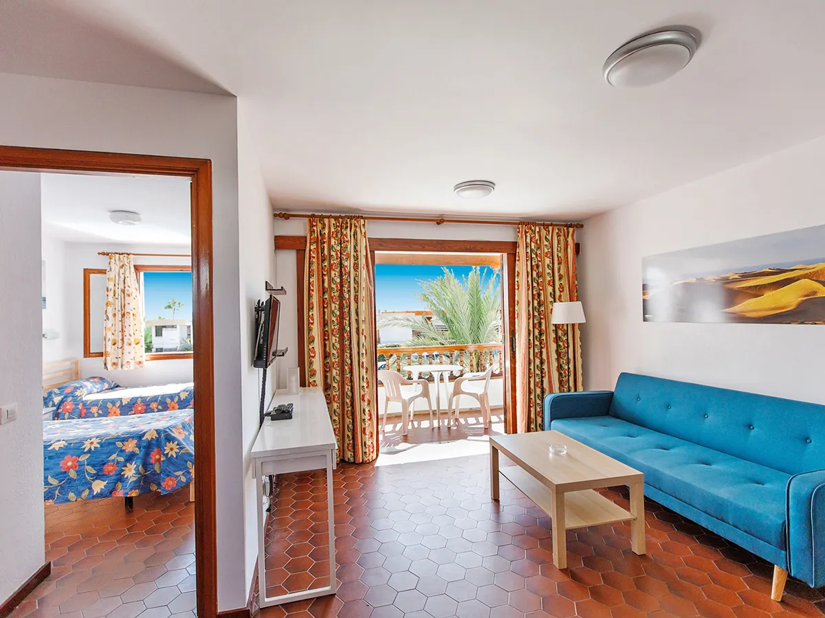 - Appartement (APC, ca. 40 m²), woonkamer, 2 aparte slaapkamers, kleine keuken met koelkast, koffiezetapparaat, waterkoker, broodrooster, magnetron, tv, WiFi, huurkluis. Bad/douche, toilet. Balkon of terras. Max. 5V