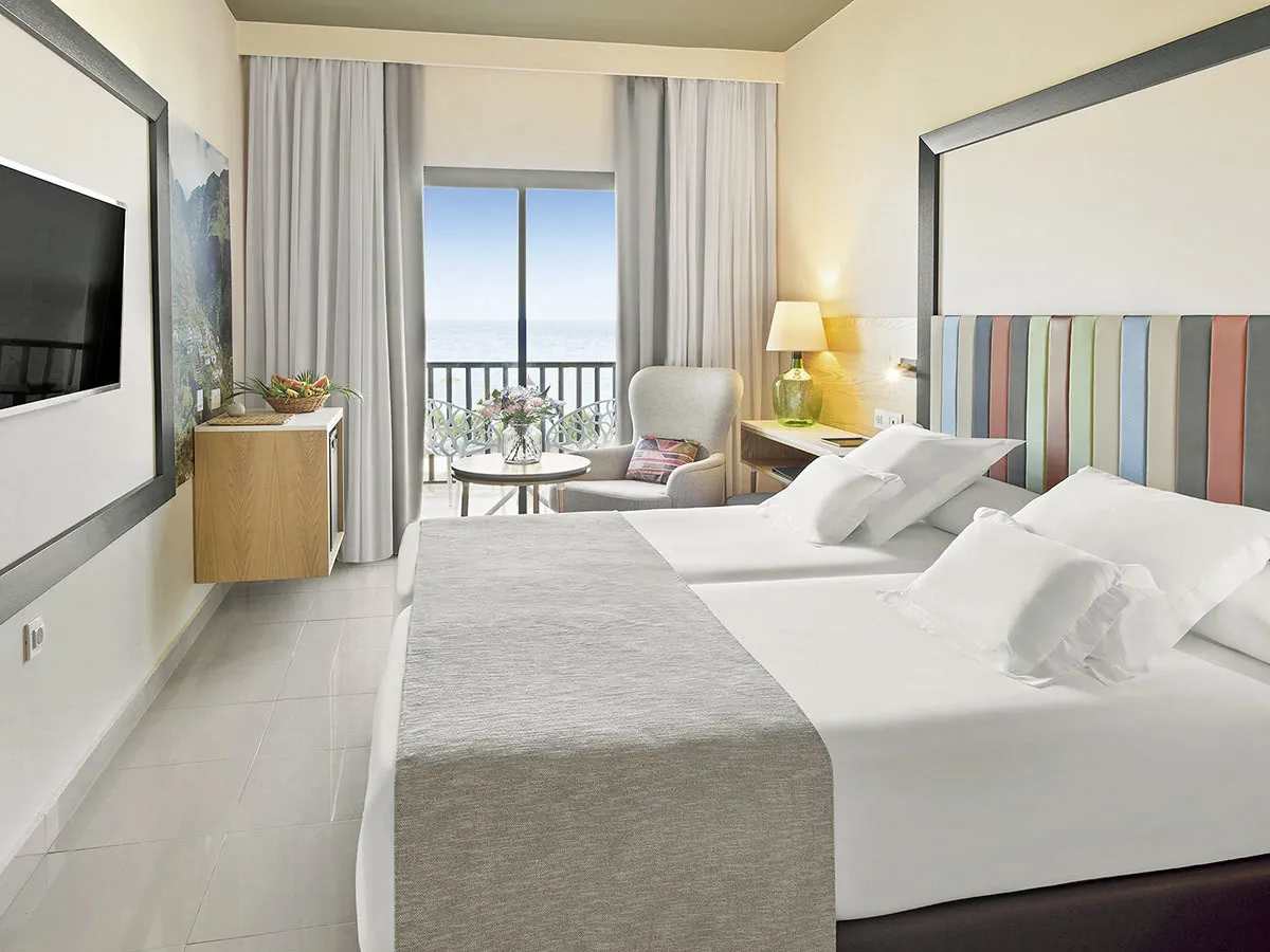 - Tweepersoonskamer (DZ, ca. 22 m²), airconditioning, tv, telefoon, WiFi, huurkluis. Bad/toilet, haardroger. Balkon. Max. 3V, te boeken voor alleengebruik (EZ)<br>Tweepersoonskamer (DZM, ca. 22 m²), airconditioning, tv, telefoon, WiFi, huurkluis. Bad/toilet, haardroger. Balkon met mooi zeezicht. Max. 3V, te boeken voor alleengebruik (EZM)