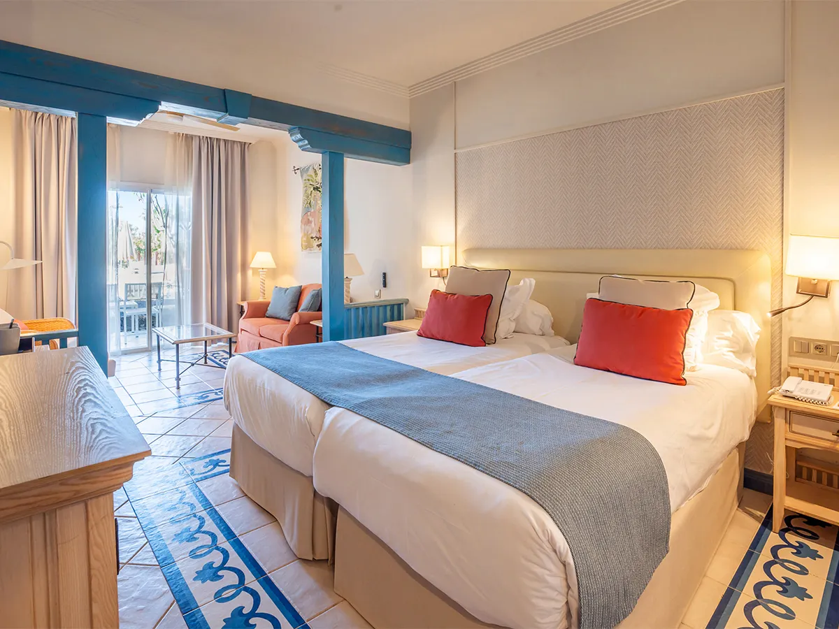 - Tweepersoonskamer (DZ, ca. 38 m²), airconditioning, plafondventilator, zithoek, tv, WiFi, minibar, kluis, koffie-/theezetapparaat. Bad/douche, toilet, haardroger, badjassen/slippers. Balkon/terras, tuinzicht. Max. 3V, ook voor alleengebruik te boeken (EZ) of als familiekamer (FZ, min./max. 2V+2K)<br>Tweepersoonskamer (DZM, ca. 38 m²), airconditioning, plafondventilator, zithoek, tv, WiFi, minibar, kluis, koffie-/theezetapparaat. Bad/douche, toilet, haardroger, badjassen/slippers. Balkon/terras, zeezicht. Max. 3V, ook voor alleengebruik (EZM)<br>Tweepersoonskamer (DPB, ca. 38 m²), airconditioning, plafondventilator, zithoek, tv, WiFi, minibar, kluis, koffie-/theezetapparaat. Bad/douche, toilet, haardroger, badjassen/slippers. Balkon met zwembadzicht. Max. 3V<br>Tweepersoonskamer "Club Volcan" (DSP, ca. 38 m², vanaf 18 jaar), airconditioning, plafondventilator, zithoek, telefoon, tv, WiFi, minibar, kluis, koffie-/theezetapparaat. Bad/douche, toilet, haardroger, badjassen/slippers. Balkon/terras met zeezicht. Max. 3V, voor alleengebruik te boeken (ESP) <br>"Club Volcan" biedt extra diensten zoals o.a. kamerligging in de aparte ruimte van het hotel, aparte ingang van het hotel, apart inchecken, kussenmenu, nationale en internationale kranten, een eigen ontbijtzaal, drankservice aan de poolbar, 's middags koffie- en cakeservice, sauna en Turks bad inbegrepen, apart buitenterras met zwembad, poolbar en Balinese bedden.