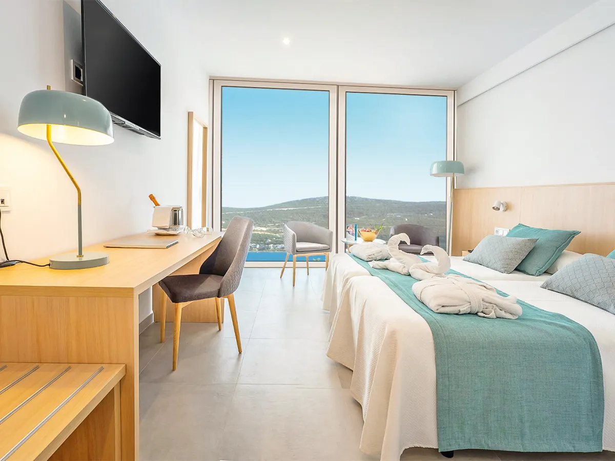 - Modern vormgegeven vakantiehotel met tuin, zwembad, binnenzwembad (verwarmbaar), kinderzwembad, poolbar, ligbedden. Receptie, wifi, lobbybar, restaurant, bar. 4 sterren, 98 kamers.